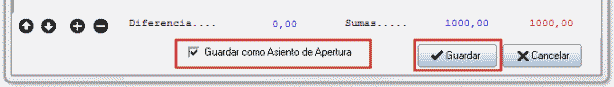 Las sumas de las columnas DEBE (Débito) y HABER (Crédito) deben ser iguales para que el asiento pueda guardarse.