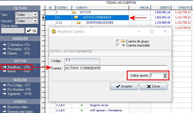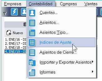 Si tiene cargado más de un índice, después de haber obtenido los informes del Indice 1 modifique el índice de ajuste de las cuentas con el número del índice que desea aplicar.