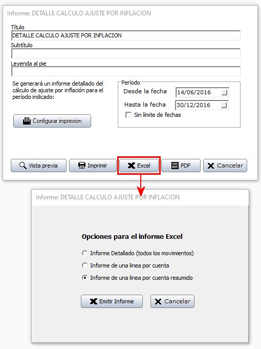 Desde el menú principal seleccione (Contabilidad > Informes > Ajuste por inflación).