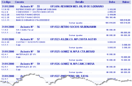 Un asiento esta formado por dos tipos de registros; los asientos propiamente dichos y los apuntes, también llamados (pases)