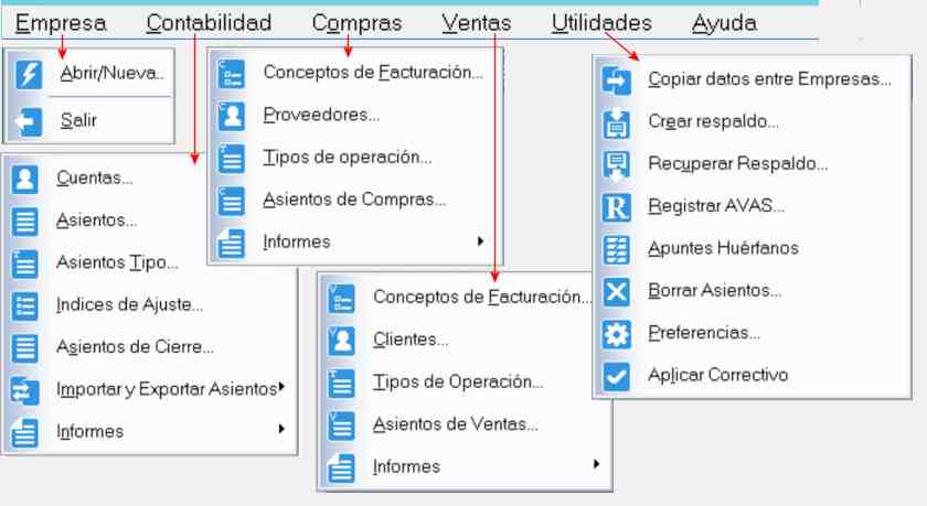 Aquí veremos las operaciones que podemos realizar desde el menú Empresas:
